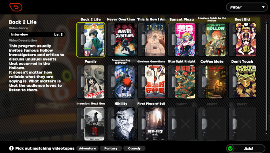 As you progress through the game, you'll have the opportunity to grow your collection of tapes, providing you with greater adaptability to shifts in viewer preferences.