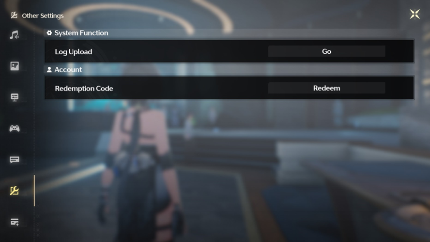 From there, look for "Other Settings" on the left-hand side and select the "Redeem" option under "Redemption Code."