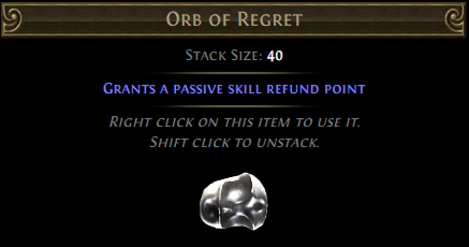 Function: Orbs of Regret serve as the respec tokens in Path of Exile 2.