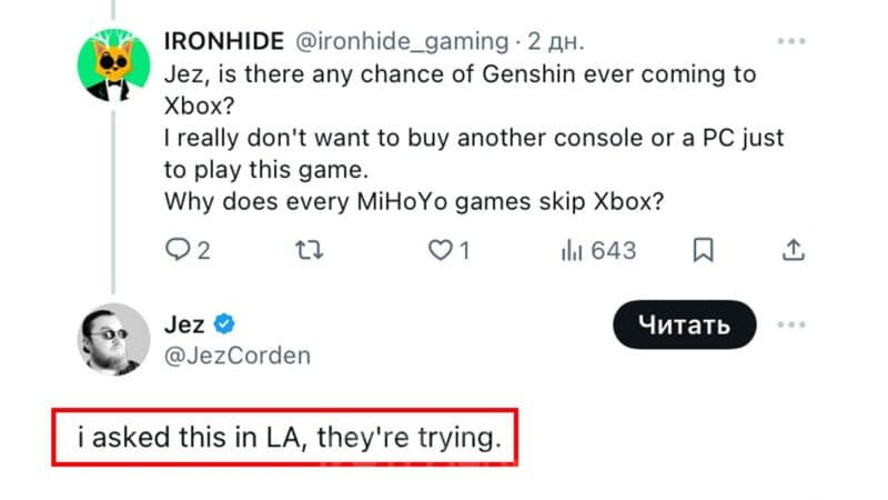 Infolgedessen bedauerten die Verantwortlichen von Xbox die versäumte Gelegenheit und sind nun daran interessiert, Genshin Impact auf ihre Plattform zu bringen.