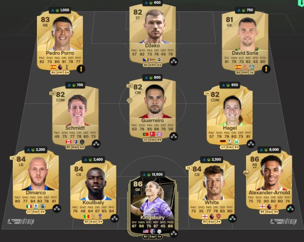 Le DCE Kingsley Coman se compose de quatre équipes, conçu pour célébrer les cartes flashback dans le mode FUT d'EA FC 25. Cependant, au regard des prix des cartes et des exigences demandées, il serait judicieux de ne pas s'engager dans cette création d'équipe. Bien que la carte flashback de Coman soit correcte, elle ne se démarque pas particulièrement compte tenu de son coût et de son timing de sortie. En effet, la sortie coïncide avec l'événement TOTY et suit de près l'introduction de l'évolution Avalanche (valant 250 000 crédits et offrant de bien meilleures cartes). Ainsi, Coman arrive à un moment peu opportun. Cela dit, sa carte détient un bon potentiel futur avec des statistiques intéressantes, un 5-4 en étoiles, et un physique distinctif en jeu, bien que ses styles de jeu restent moyens.