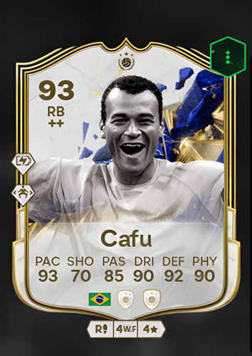 Marcos de Morais's Icon card stands out as a formidable Right Back with an impressive overall rating of 93, making it a prized possession for any team. This card showcases an exceptional combination of attributes, including a blistering pace of 93, which ensures that Morais can keep up with the fastest attackers. His passing and dribbling ratings, at 85 and 90 respectively, allow him to seamlessly transition from defense to offense, providing crucial assists and maintaining control under pressure. With a defense rating of 92 and physicality at 90, Morais is a stalwart presence on the backline, adept at intercepting plays and outmuscling opponents. This card is invaluable for its ability to not only fortify the defense but also contribute to quick counter-attacks, enabling players to dismantle the opposition’s setup and capitalize on scoring opportunities.