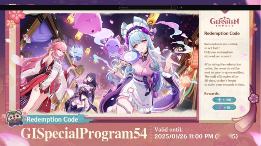 Lors du live de présentation, trois codes temporaires ont été révélés, permettant d'obtenir jusqu'à 300 primo-gemmes gratuitement.