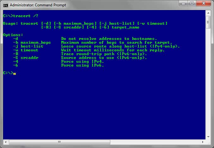 For a comprehensive list of available arguments, just enter tracert /? in the command prompt.