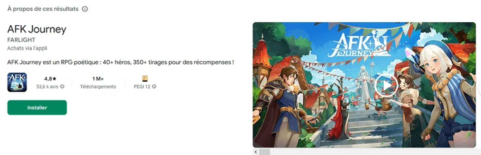 Accédez à l'onglet du Play Store et entrez "AFK Journey" dans la barre de recherche.