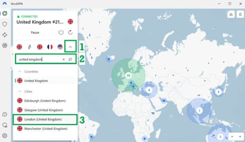 In this instance, I opted for a server located in London by searching for "united kingdom."