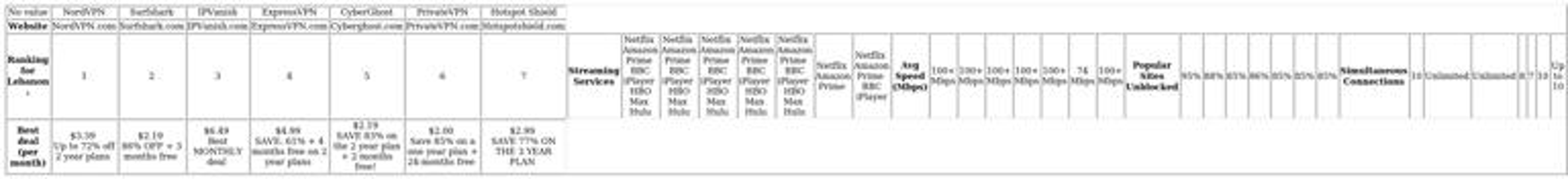 Here is a compilation of top VPN options tailored for users in Lebanon: