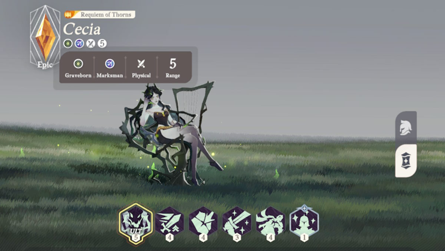 - Capacités : Chaque héros possède des caractéristiques spécifiques affichées en haut de leur carte, incluant leur portée et le type de dégâts qu'ils infligent. En analysant leurs compétences, vous découvrirez comment ils peuvent attaquer, guérir, renforcer vos alliés ou affaiblir vos ennemis. La clé ici est encore une fois la synergie. Réfléchissez à la manière dont vous souhaitez orienter votre équipe : infliger des dégâts par poison, désorienter vos adversaires, survivre plus longtemps ou bien frapper rapidement et efficacement.