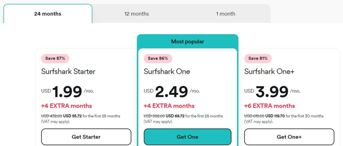 Additionally, you can take advantage of our special Surfshark discount coupon for an impressive 87% off, plus four extra months at no charge when signing up for a two-year plan.