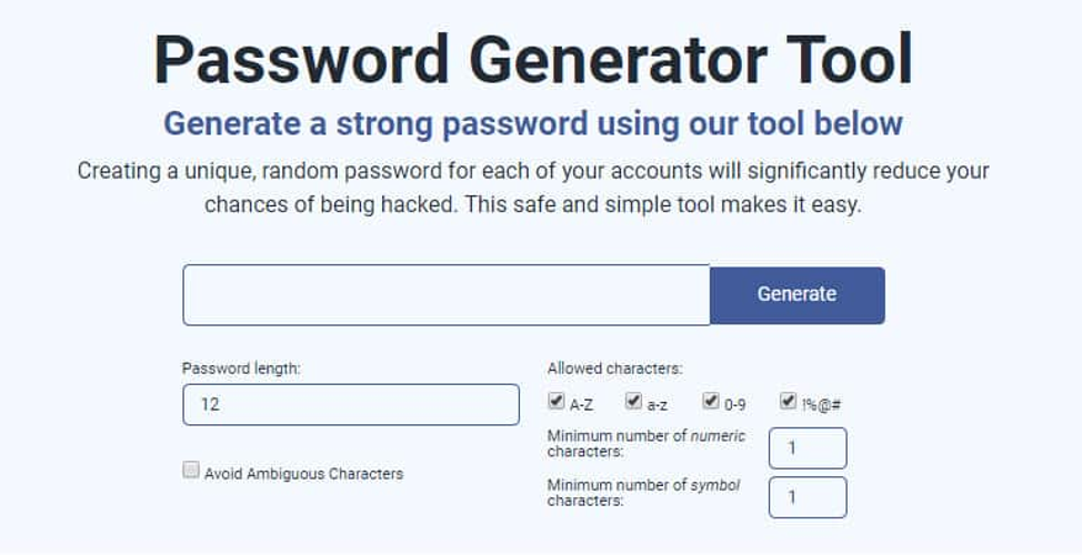 If you're having trouble coming up with a secure password, try utilizing a password generator tool to assist you.