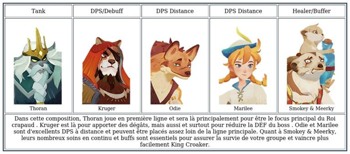 Il est important de noter que la composition d'équipe suggérée est simplement un conseil ; néanmoins, les cinq héros proposés sont d'excellents alliés pour ce combat.