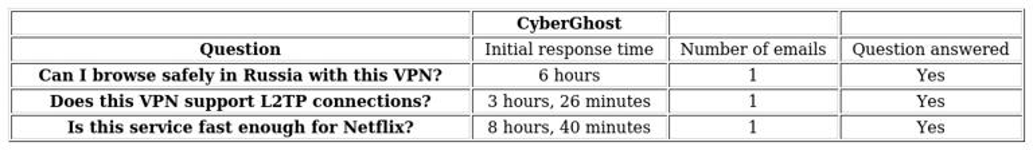 CyberGhost, on the other hand, offered detailed, comprehensive answers and included helpful resources in their replies.