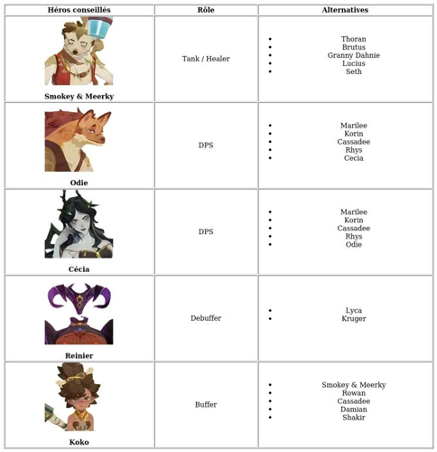 Pour le rôle de DPS principal, remplacez Koko par Thoran, et Korin par Odie.