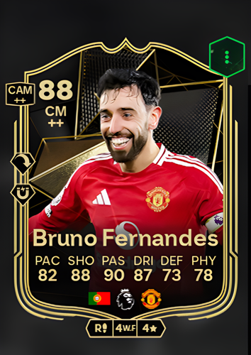 Bruno Miguel Borges Fernandes's TOTW card shines as a Center Midfielder with an impressive overall rating of 88, making him a formidable presence on the pitch. This card boasts a pace rating of 82, allowing Fernandes to maneuver swiftly across the field. His shooting prowess is highlighted by a rating of 88, making him a serious threat near the goal. With an exceptional passing rating of 90, Fernandes is adept at orchestrating plays and setting up his teammates for success. His dribbling skills, rated at 87, enable him to navigate tight spaces with ease, while a defense rating of 73 and physicality rating of 78 ensure he can hold his own in midfield battles. As a Center Midfielder, this card offers the perfect blend of attacking flair and playmaking ability, providing a crucial link between defense and attack, and the potential to dominate the game with his vision and precision.