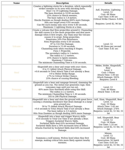 • Transitioning to bear form unleashes formidable melee capabilities, where skills like Bear Maul generate rage, and Rampage delivers devastating assaults on foes.