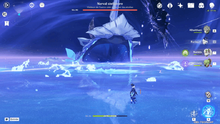 Ce boss possède plusieurs mécaniques, dont les ondes gravitationnelles, qui se manifestent par des ondes de choc sur le sol.