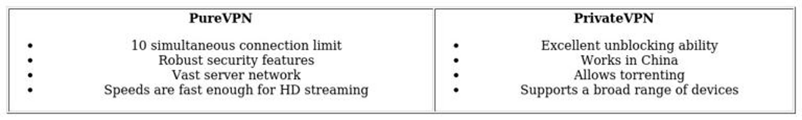 When comparing budget-friendly VPN options, both PrivateVPN and PureVPN offer competitive pricing structures that make premium VPN services accessible to most users.