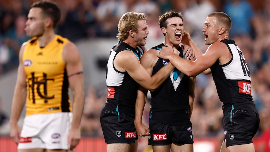 Multiple goal-scorers for Port included Georgiades and Rioli with three apiece, while Powell-Pepper, Rozee, Richards, and Jackson Mead each contributed two goals.