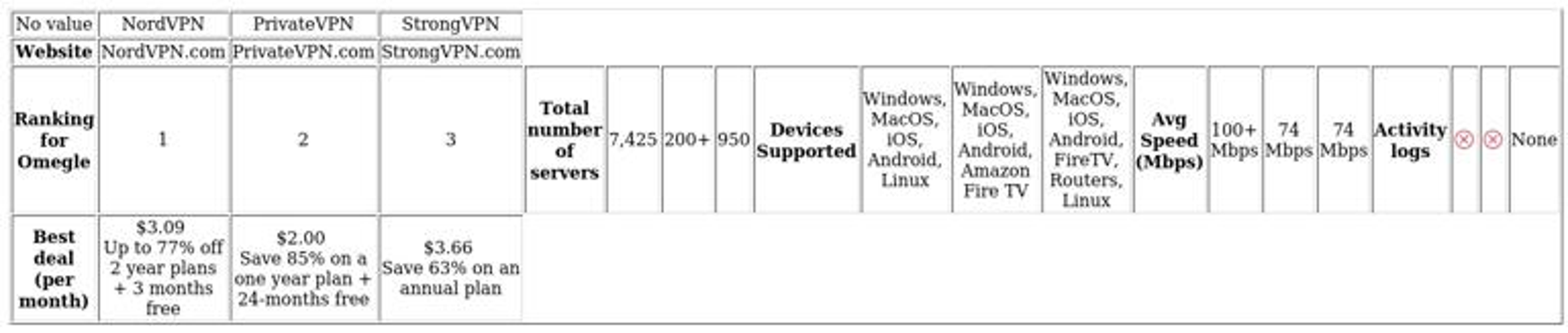 For a detailed comparison of the top features, check out our in-depth reviews. Begin with NordVPN, our #1 choice for Omegle.