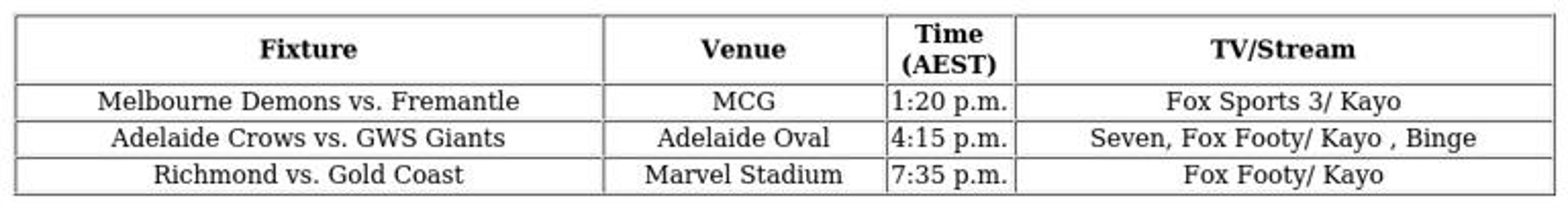 Viewers can access live coverage via Fox Footy (TV) or stream through Kayo Sports, which offers a free trial for new users.