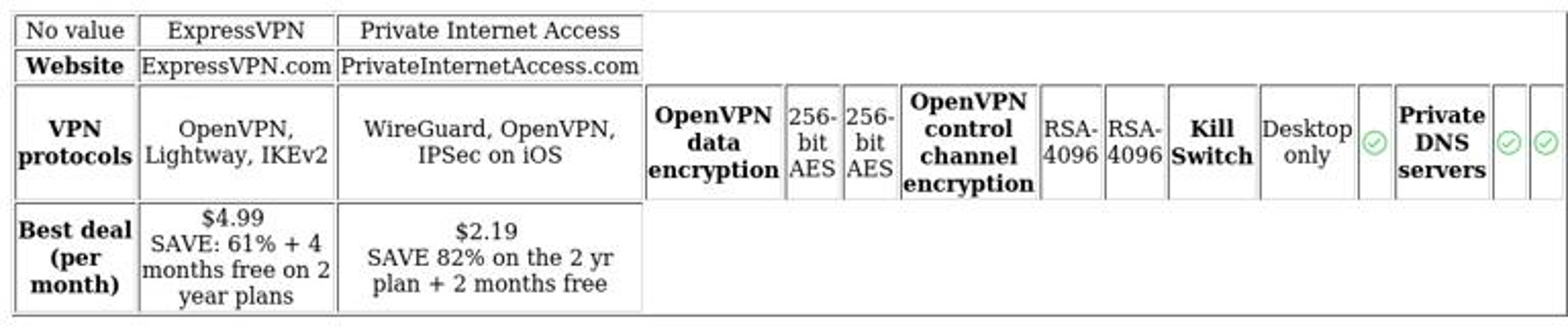 When comparing ExpressVPN and Private Internet Access (PIA), users will find several shared security mechanisms that effectively conceal their actual IP addresses.