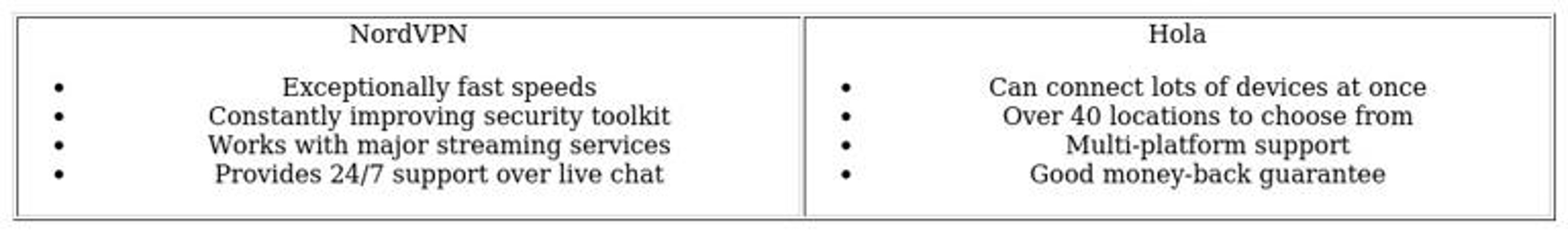 Both NordVPN and Hola provide a 30-day money-back guarantee, allowing you to test the service and request a full refund if it doesn't meet your needs.