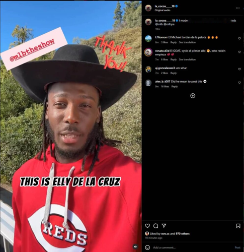 Today, that anticipation was validated when Elly De La Cruz, shortstop for the Cincinnati Reds, shared a video on his Instagram, announcing that he would grace the cover of MLB The Show 25.