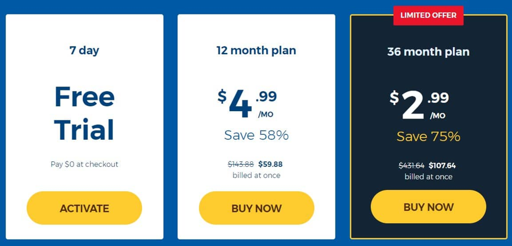 The 3-year package slashes prices to just $2.99/month (down from $11.99)