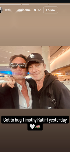 The British performer, known for his role in the hit show's latest season, shared two cheerful photographs featuring himself and fellow cast member Walton Goggins during a chance airport encounter. One image particularly caught fans' attention as Isaacs affectionately kissed Goggins on the temple.