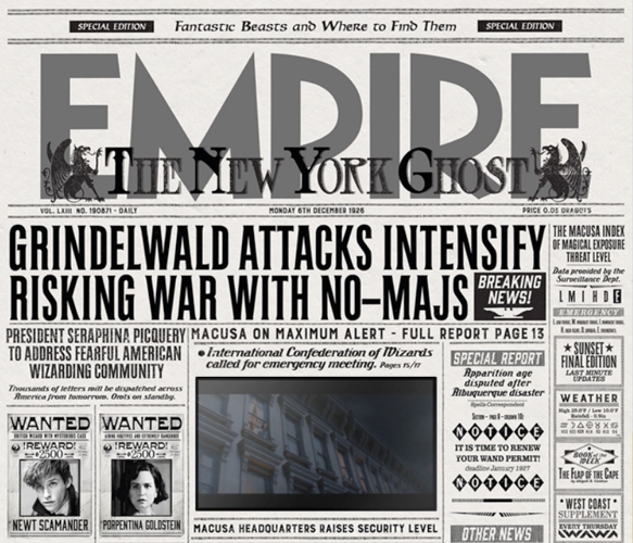 Inspired by the Harry Potter universe’s enchanted newspapers, the design mimics The New York Ghost ,