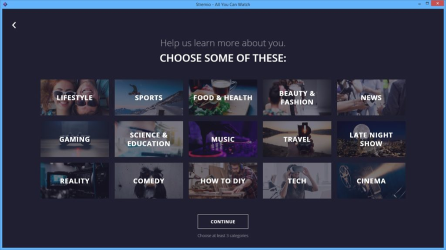 During your initial setup, Stremio will prompt you to select at least three content categories that align with your interests. This information helps the application curate personalized recommendations tailored to your preferences. After completing this step, you'll immediately receive your first content suggestions based on your selections.