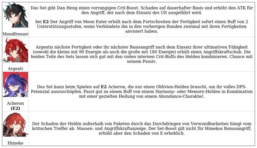 Die Wahl des richtigen Sets ist entscheidend, um die Leistungsfähigkeit des Haupt-Damage Dealers (DD) zu maximieren, insbesondere wenn passende Unterstützung zur Verfügung steht.