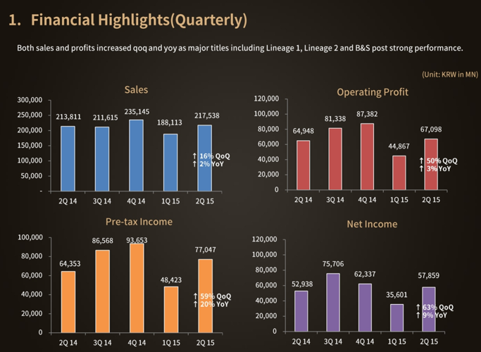 NCsoft's financial performance for the second quarter of 2015 has been released, revealing trends similar to those seen in the first quarter.
