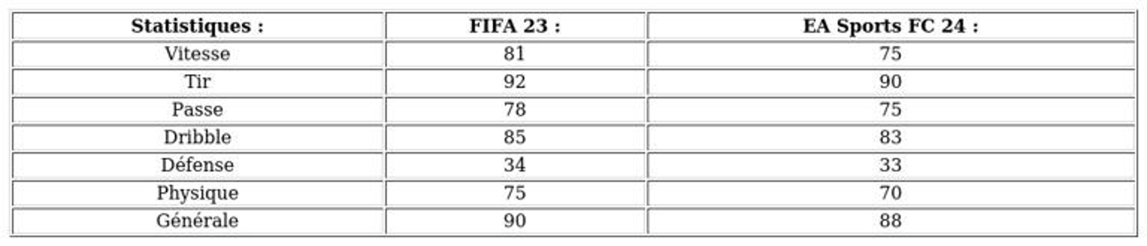 Un utilisateur sur Twitter a récemment partagé des cartes "FUT" pour ces deux légendes, révélant une nette diminution de leurs statistiques par rapport à l'année précédente.