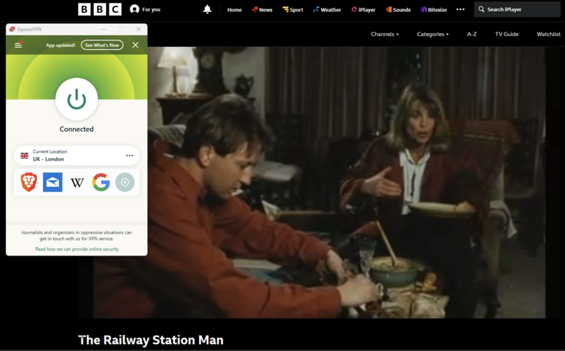 Split tunneling functionality lets users route only BBC iPlayer traffic through encrypted UK servers while allowing other applications to utilize their regular network