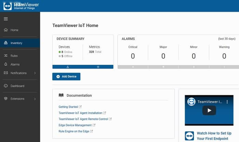 - TeamViewer IoT : A secure remote monitoring and management tool with a great interface and scripting capabilities for process automation.