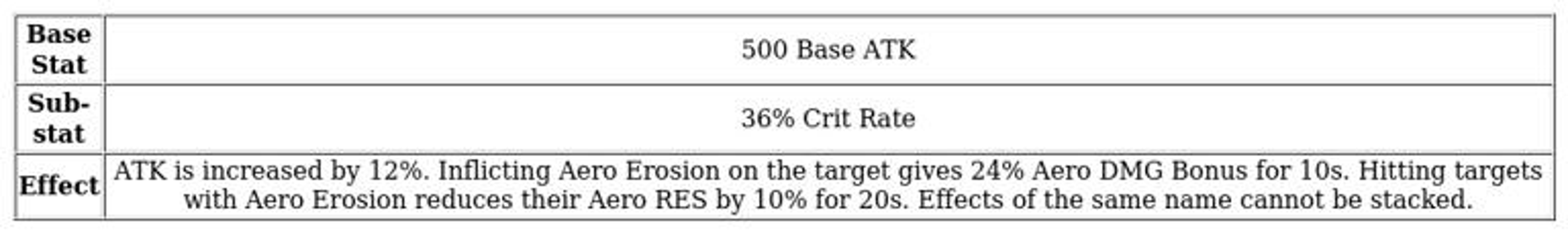 Beyond the various buffs provided by this weapon, it also reduces the enemies' resistance to aero damage.