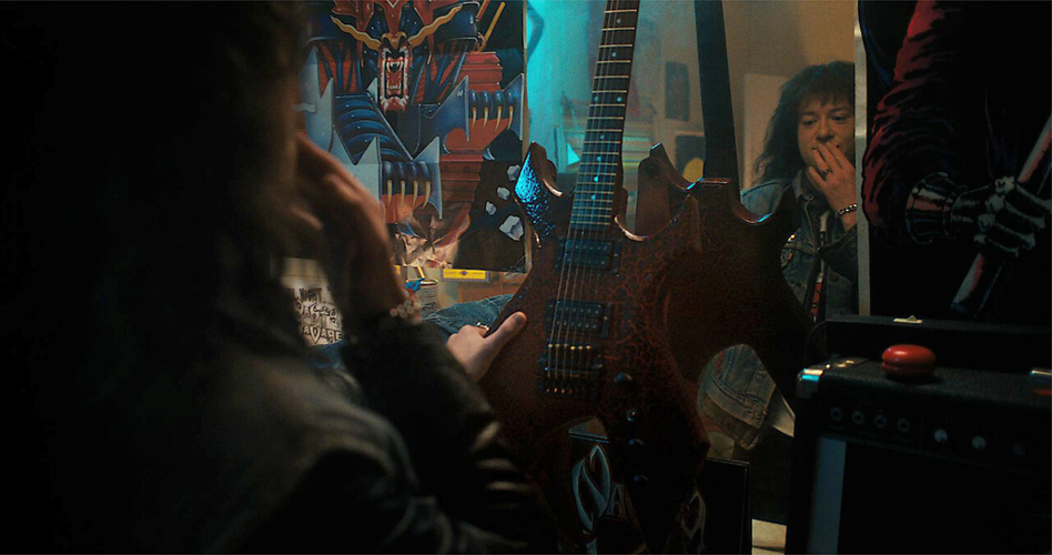The crimson crackle finish on Eddie's B.C. Rich guitar? A deliberate nod to the upside down's palette.