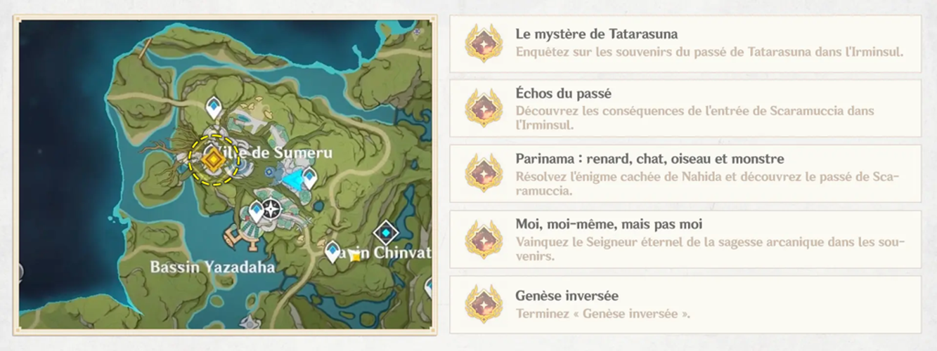 Cette aventure débute dans la région de Sumeru, où l'on rencontre Aqaba et Sawada.