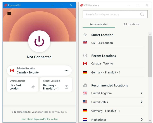 ExpressVPN also enables one-click connections through its desktop apps.
