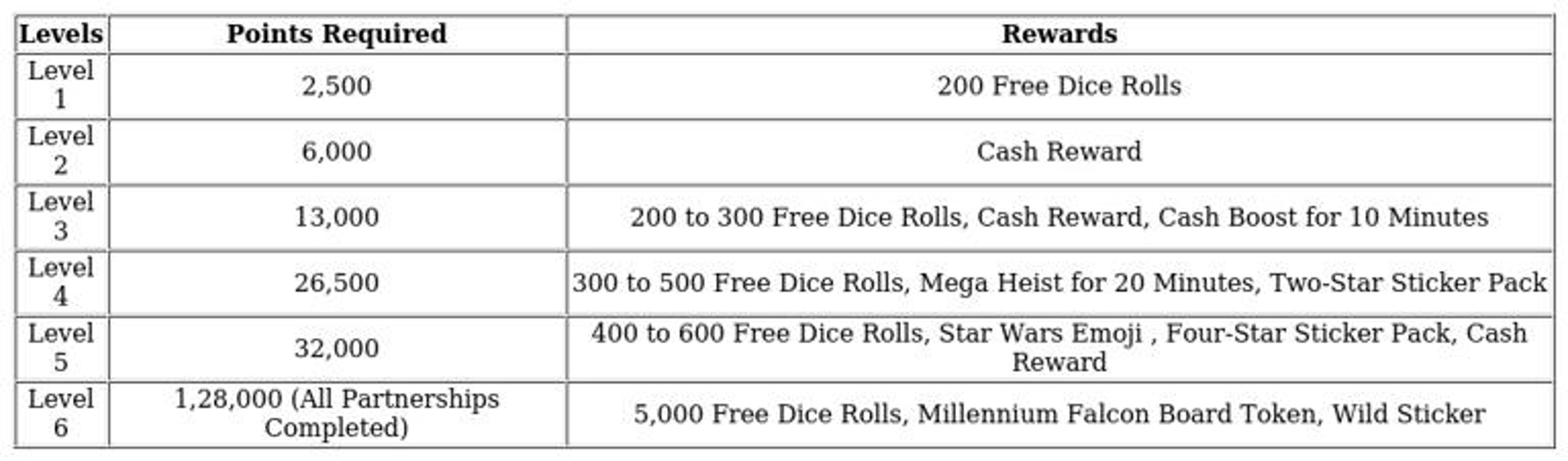 The Hyperspace Partners event itself offers a variety of attractive prizes. Successfully completing the event rewards players with a Millennium Falcon token, a wild sticker, and 5,000 dice, providing ample incentives to participate and aim for the top rewards.