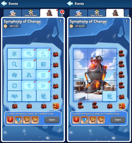 The Symphony of Change is a special event that takes place on newly launched servers prior to the start of the Fire Crystal Age, lasting for a full week. This event is designed to reappear periodically in the future as well. Participants can complete various designated missions throughout its duration to earn valuable rewards. Achieving all missions aligned along a single row or column grants access to a stage chest, while completing every mission across the entire event unlocks the exclusive Trailblazer Chest. Any rewards that players do not claim during the event will be sent via mail once the event concludes.