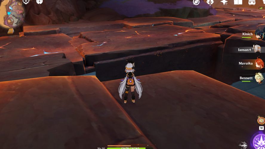 Grâce à cette activation, le phlogistique liquide se solidifie, rendant le terrain accessible. Utilisez la vitesse d’un Tatankasaure ou d’un personnage du collectif de l’abondance pour détruire les rochers en courant dessus, ce qui brisera le sol et vous permettra de tomber dans la cavité. Continuez à détruire les rochers jusqu’à localiser la tête du dragon ; en la touchant, vous ouvrirez de nouveaux chemins à explorer.