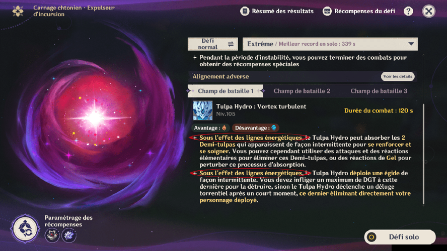 Les défis extrême et sinistre introduisent aussi des mécaniques additionnelles, comme la perturbation des lignes énergétiques, rendant les affrontements encore plus exigeants. La difficulté sinistre est particulièrement réservée aux joueurs disposant de constellations complètes, d’armes 5 étoiles et d’équipes parfaitement optimisées, bien que la récompense en progression ne soit pas verrouillée derrière cette étape.