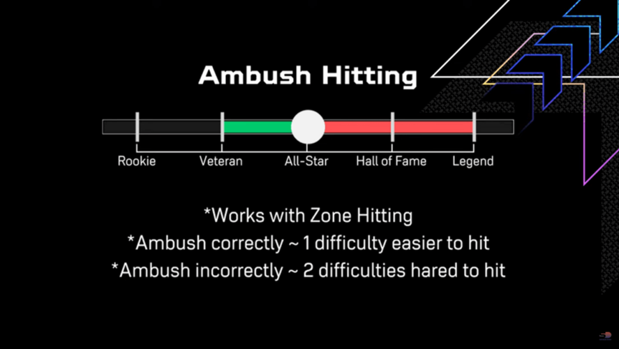 The ambush hitting mechanic marks a significant evolution from the previous zone hitting approach. It offers players a strategic advantage by granting a slight performance boost when they accurately anticipate the side of the plate where the pitch will arrive.