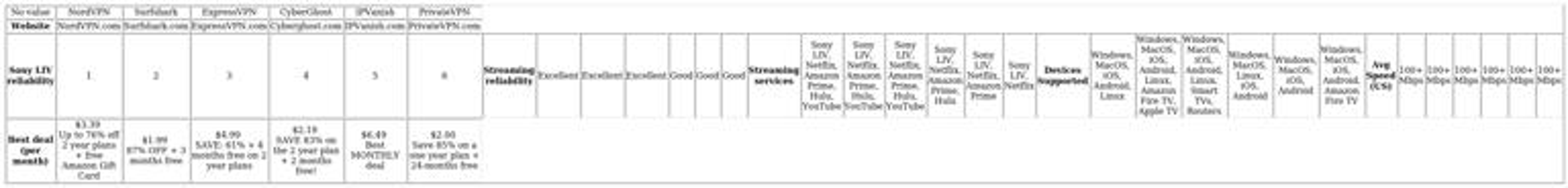 To get a closer look, let's delve into the specifics of each of our suggested Sony LIV VPN providers. Jul 2025 works with Sony LIV Tested Jul 2025