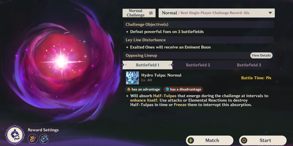 When facing the Hydro Tulpa at fearless level and higher, it periodically generates a protective shield. During these moments, players must focus on dealing maximum damage—any form of elemental damage or reactions will suffice—to break the shield quickly. Failing to do so results in immediate defeat for the current character, emphasizing the importance of swift and effective damage output.