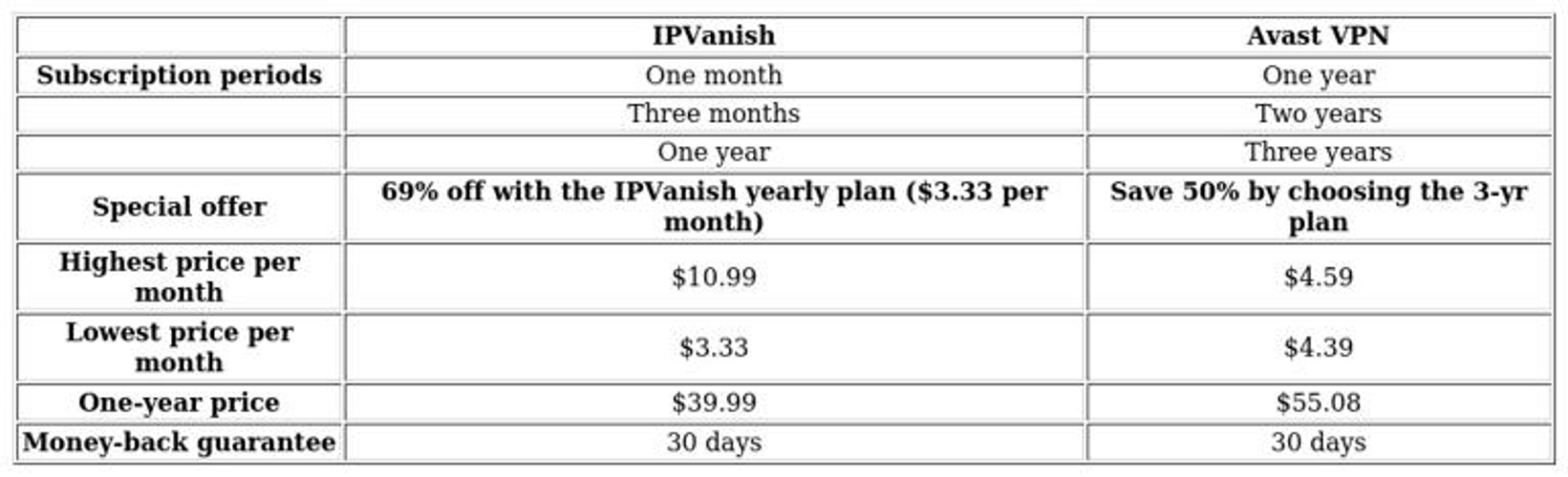 Comparing IPVanish and Avast VPN: Price Point Analysis