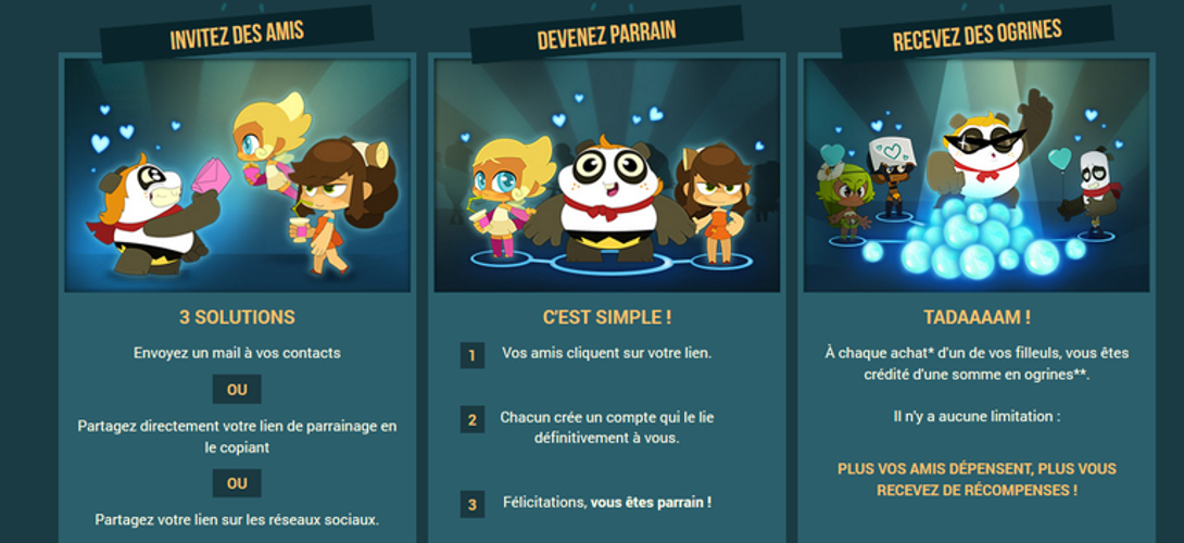 De leur côté, les novices profitent dès leur premier achat d’un ensemble de récompenses offertes par leur parrain. Pour profiter de ces bénéfices, il suffit simplement de se rendre sur le site officiel de Dofus et de suivre les instructions claires pour établir le lien de parrainage.