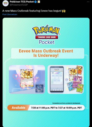 Reddit-Nutzer indigo hebt eine bedeutende Änderung hervor, die im Juli vom Entwickler Dena für das Pokémon TCG Pocket eingeführt wurde. Diese Anpassung sorgt dafür, dass bei den massenhaften Evoli-Events jede Wahl mindestens zwei exklusive Karten enthält, die seltenen Exemplaren ähnlich sind. Das Event läuft insgesamt acht Tage und begann am 21. Juli.